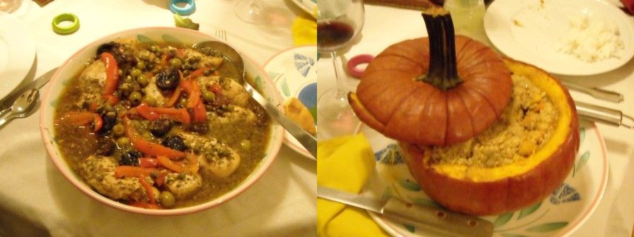 左:チキン料理。 右:クスクス