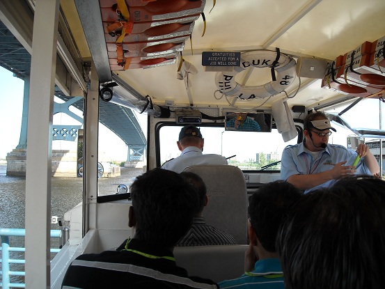水陸両用バスに乗り込み観光名所を巡るツアー。