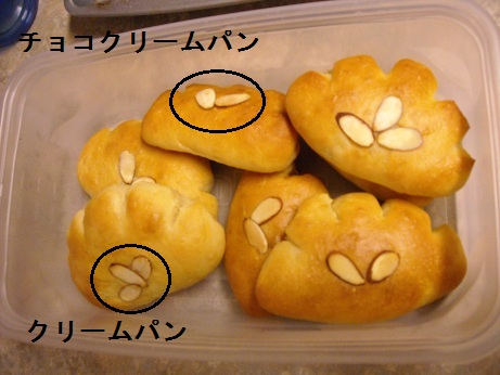 2つがチョコ。3つがクリームパン。