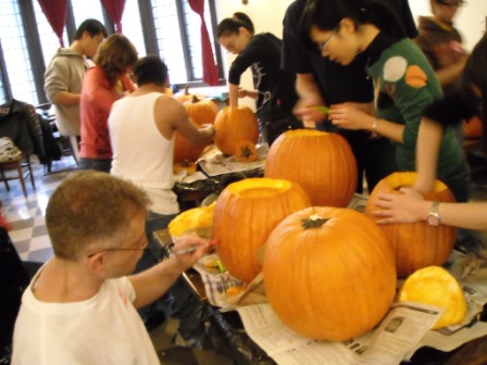 パンプキン20個が無料で用意されていて、Jack-o'-Lantern(カボチャのちょうちん?)を皆と一緒に作っていった。