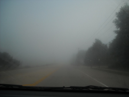 。恐いので時速40km位で進む。ハイウェイに入っても視界は良くなく、結局、1時間20分位で目的地に到着。