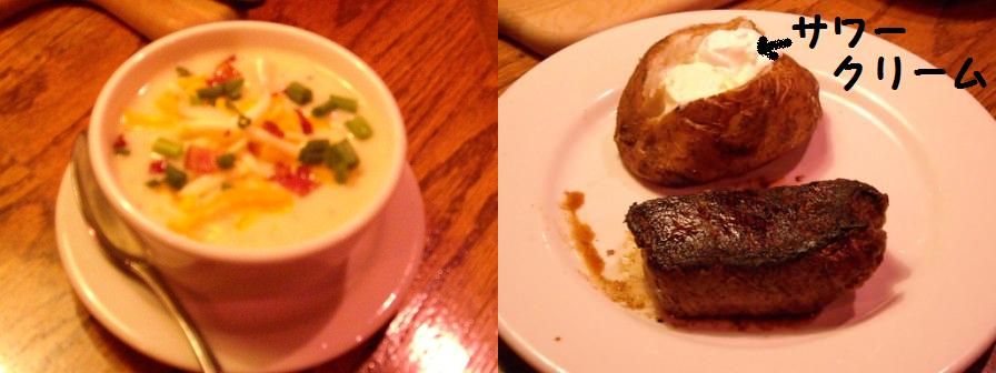 今回はスープ、ベイクドポテトをチョイス。ポテトにはチーズをかけるか、サワークリーム(バター含)をかけるか、訊ねられてサワークリームをチョイス。